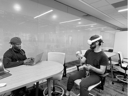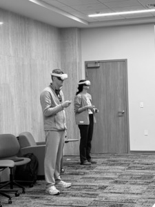 The goal of the pilot was to increase comfort and familiarity with the VR software. As part of this pilot, students assessed their ability to navigate and use the platform. Because SIMVANA allows for a flexible setup based on user preference and space availability, students were able to choose from different interaction modes: walking within a larger space to virtually pick up and manipulate items, standing in place with a more limited range of movement, or remaining seated while bringing the virtual environment to them. This flexibility allowed students to explore different options for interacting with the VR environment during the pilot and helped them determine their preferred setup.